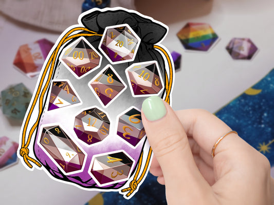 ACE PRIDE Dice Vinyl Kiss Cut Sticker sheet Asexual DnD TTRPG Glossy or Matte Splashproof Dice Bag Sticker set of 9 Polyhedral Dice