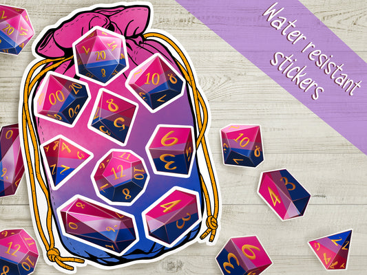 BI PRIDE Dice Vinyl Kiss Cut Sticker sheet Bisexual DnD TTRPG Matte Splashproof Dice Bag Sticker set of 9 Polyhedral Dice