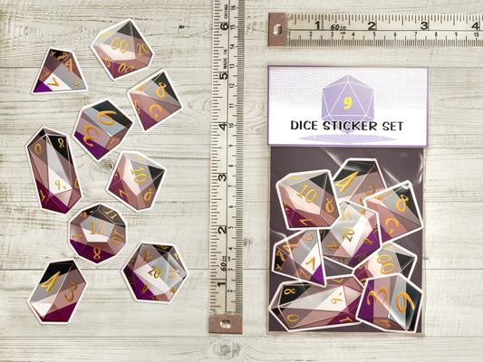 ACE PRIDE DICE Vinyl Sticker set of 9 Semi-glossy Dishwasher-safe laminated vinyl Polyhedral Dice stickers DnD D20 TTRpg
