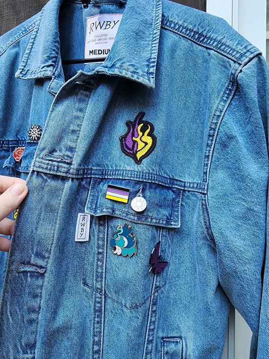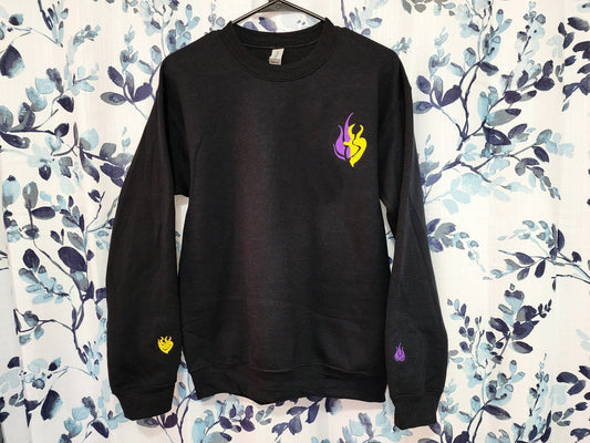Blake Belladonna Emblem Embroidered unisex Sweatshirt with lyrics quote on sleeve Custom made black novelty pullover sweater for RWBY fans