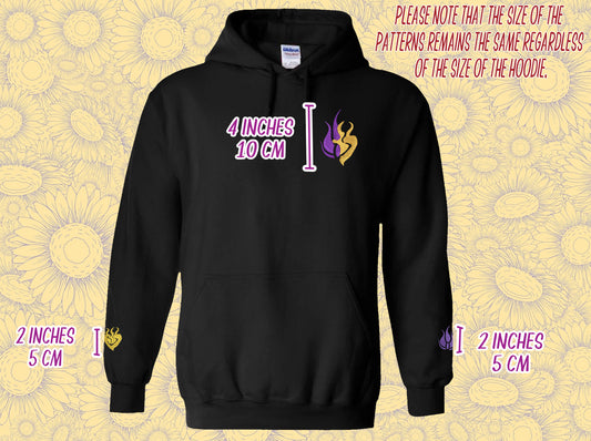 BUMBLEBY Embroidered Hoodie with Yang and Blake symbols on sleeve BMBLB Bumblebee Emblem black novelty unisex hooded pullover for RWBY fans