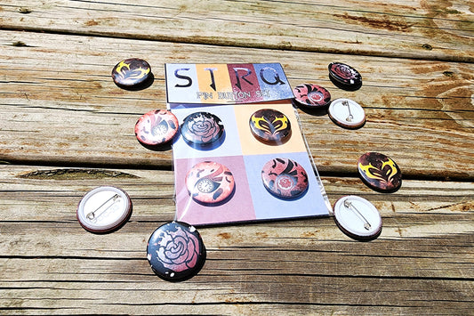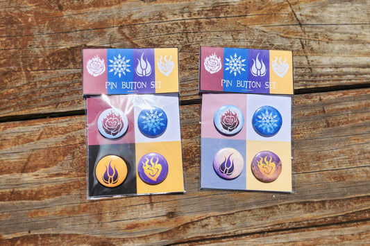 Team STRQ PIN Buttons SET 1.25" 32mm pinback button badge emblem pack Summer Rose, Taiyang, Raven and Qrow Branwen symbol pins collection