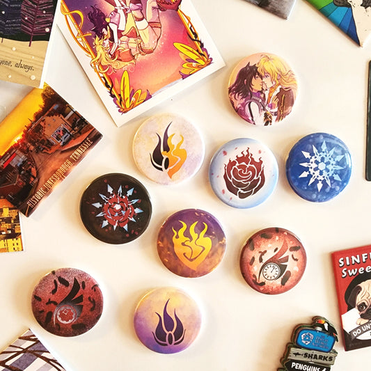 Team RWBY PIN Buttons SET 1.25 inch 32mm pinback button badge emblem pack Ruby Weiss Yang Blake symbols pins collection or single pins