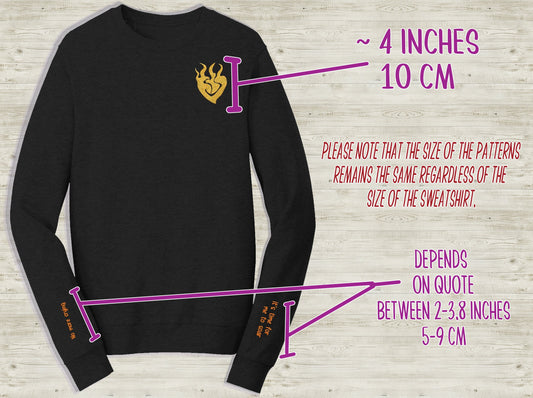 Weiss Schnee Emblem Embroidered unisex Sweatshirt with Mirror, Mirror II. quote on sleeves Black novelty pullover sweater for RWBY fans