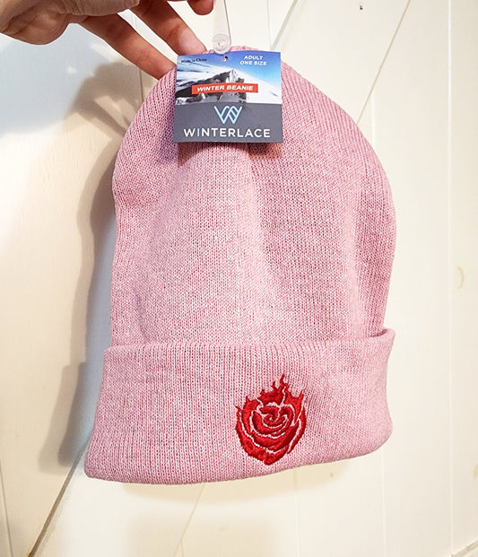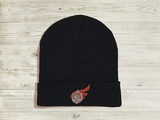 WhiteRose Embroidered Beanie hat | Custom cozy winter knitted skull cap with Weiss and Ruby's emblems