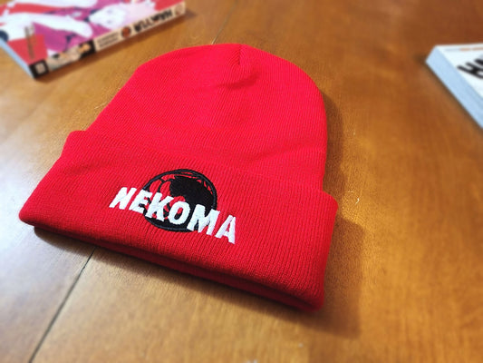 Nekoma Embroidered red Beanie hat | Custom cozy winter knitted skull cap Cats Volleyball team VBC Tokyo